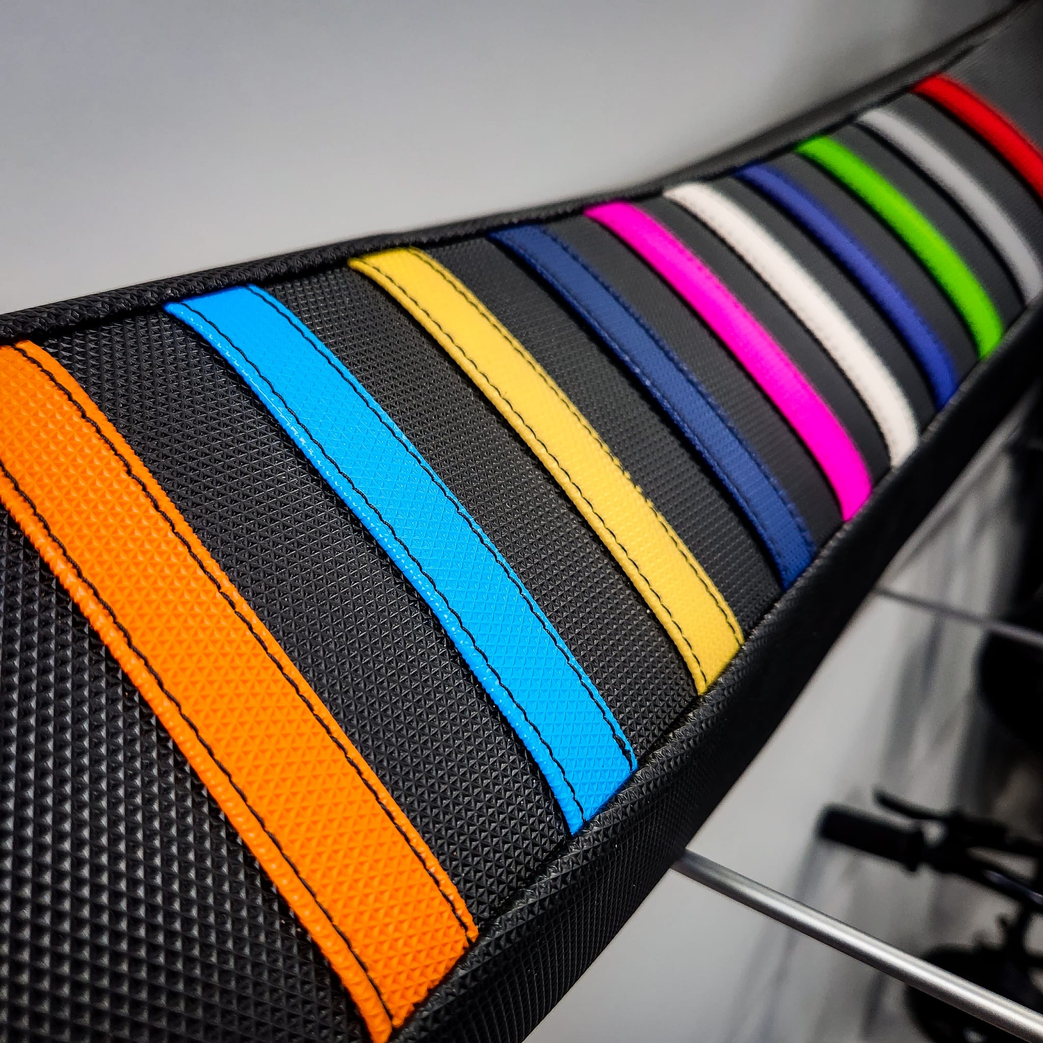 The RipnGrip seatcover range is designed for no more slipping and sliding by providing traction that is specially placed to assist rider control whether it is wet or dry. The rubberised diamond Grippa material includes all the modern team colours, making it an idealistic option to those whom are after a superior, durable, high quality, functional vinyl.
